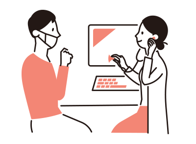 院内の面会は中学生以上のご家族またはキーパーソンのみ、少人数・短時間でお願いします。
