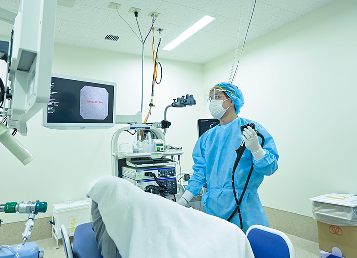 2020年4月より、内視鏡センター(C棟)が開設されました。今まで自宅でお願いしていた大腸前処置がセンター内で行えるようになり、明るく広い空間で検査を受けられる体制を整えました。また、NBI併用拡大内視鏡や超音波内視鏡により、早期がん診断および治療が可能であり、内視鏡ファイリングを用いた洗浄履歴管理システムにより、データ管理における検索性・安全性が飛躍的に向上しました。