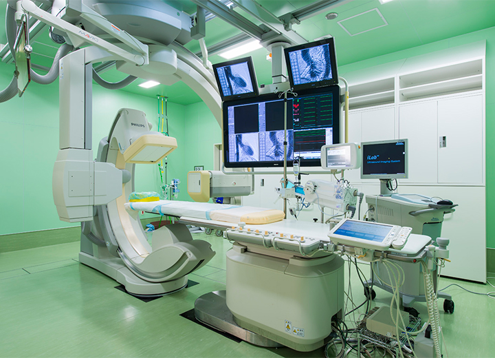 新型X線アンギオ装置など最新機器を6室(うち5台バイプレーン装置)に配備し、循環器・脳血管・消化器疾患など様々な検査・治療が可能です。またCCUと直結し効率的に連携をとることができ、緊急時にもスピーディーに対応しています。
