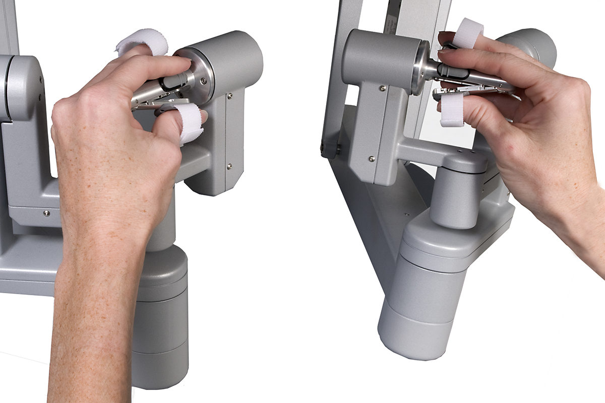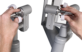 4本のアームは360°以上回転し、術者が自由に操作することができます。手先の震えがアームの先に伝わらないように手ぶれも補正しますので、極めて繊細な動きが可能となっています。