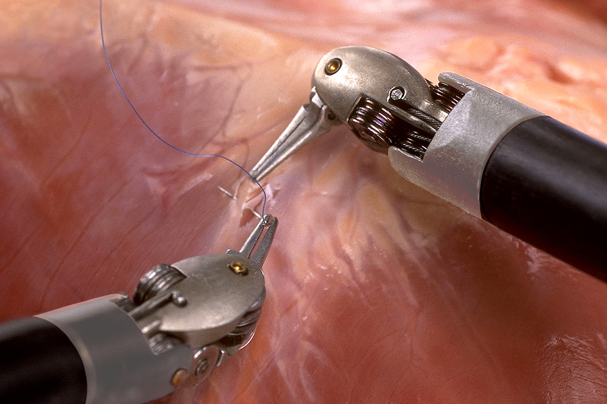 しかしながら、腹腔鏡手術では体内の深い場所での鉗子などの操作が難しく、術者による技量の差がどうしても出てしまいます。
