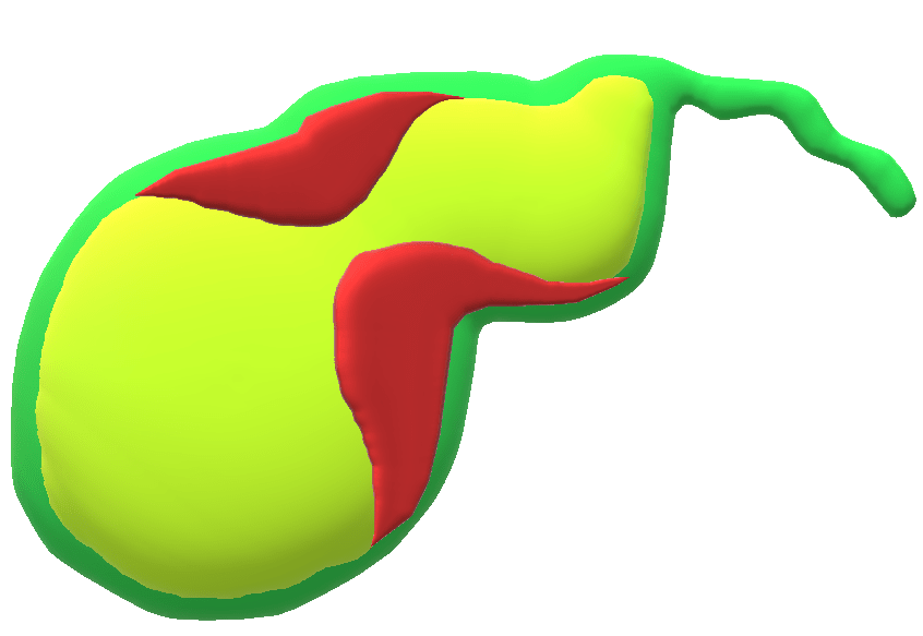 胆嚢癌に対する標準的な手術は、できるだけ取り残しの無いよう周囲のリンパ節や肝臓の一部を含めた切除を開腹手術で行います。