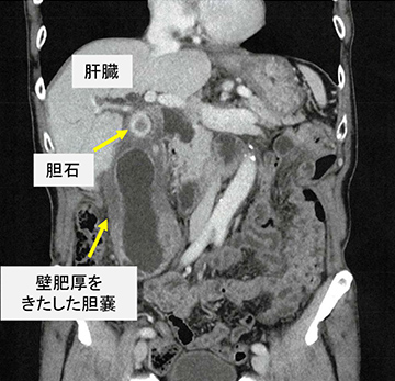 軽症から重症までさまざまな急性胆嚢炎を繰り返した後に、炎症性変化により胆嚢の壁が厚く硬くなった状態で、胆嚢の拡張・収縮機能の低下を来します。