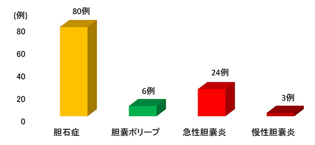 当センターでは上腹部手術の既往や炎症の有無などに関わらず、すべての良性胆嚢疾患を腹腔鏡下胆嚢摘出術の適応としています。