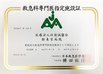 2018年12月19日に日本救急医学会より当院が救急科専門医指定施設に認定されました。