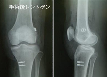 術後は膝の固定装具を特別必要とせず(術後ブレース購入し使用する病院もありますが、本院では術後膝の可動域が悪くなることがある為に使用しません)、手術翌日より車椅子移動もしくは松葉杖歩行、2日目より手術した足も着いて歩く訓練を開始します。ほとんどの場合、4日から7日目で歩いて退院が可能で、その後は1週間から1ヵ月の間隔で外来に通院しながらリハビリを行って頂きます(退院時には退院後のリハビリのスケジュールが分かるリハビリノートを差し上げます)。手術後6ヵ月経ったらほぼ2ヵ月に1回の割で通院します。およそ5~8ヵ月でスポーツ復帰が可能です。