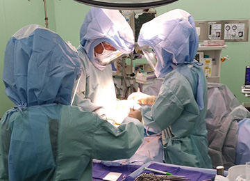 MISは軟部組織(筋肉・皮膚など)への負担をなるべくすくなくする手術手技のことです。当センターではMIS手術による人工関節全置換術(TKA)を行うことにより皮膚切開を小さくし、術後疼痛、手術侵襲を軽減。リハビリが早くすすむことによって社会復帰を早めています。皮膚切開は8cmから10cmです。 - 本院は循環器内科、心臓血管外科が有名な総合病院です。術後にTKAのリスクの一つである深部静脈血栓症の発症、持病の悪化(内科的疾患の悪化)などが発生した時は内科の先生などと協力し治療を行います。本院は抗凝固薬(バイアスピリン、ワーファリン、プラビックスなど)を内服した患者様も手術を行います。バイアスピリンは継続したまま、ワーファリンはヘパリンの点滴へ変更して手術を行います。