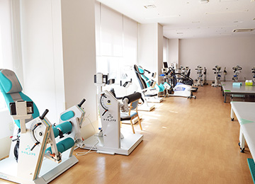 広い訓練室(合計256m2)には、最新の評価および訓練機器を整備しており、また嚥下評価のための精度の高い検査(嚥下内視鏡検査や嚥下造影検査)等も実施しています。