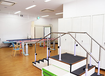 当院では、各診療科と連携をとりながら徹底したリスク管理の下、発症および術後早期からリハビリテーションを開始しております。リハビリテーション室だけでなく病室や集中治療室などのベッドサイドでもリハビリテーションを実施し、患者さまの早期回復を目指します。