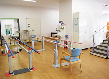 病気やケガによって何らかの障害をもった患者さまに対し、医学的治療や治療的訓練を実施する診療科です。失われた機能の回復をうながすとともに、残された能力を最大限に引きのばすための治療や訓練を行い、患者さまが家庭復帰や社会復帰できるよう援助しています。治療は、基本動作能力や移動能力の回復を目的とする理学療法、日常生活能力や社会適応能力の回復を目的とした作業療法、嚥下能力や言語および認知能力の回復を目的とした言語聴覚療法の三部門により構成され、リハビリテーション科医師の下、それぞれ専門的な立場から治療に取り組みます。