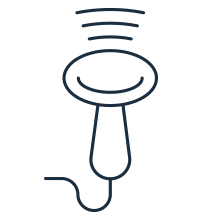 皮膚の上からゼリーを塗り、プローブを当てて観察します。痛みもなく、安全な検査です。