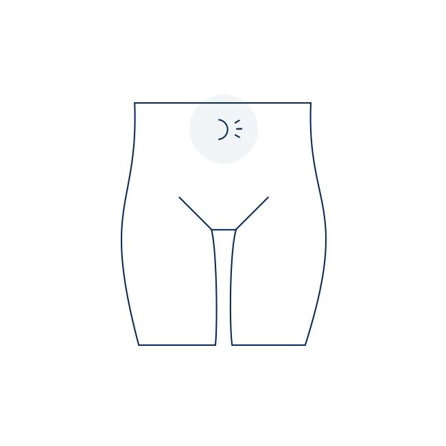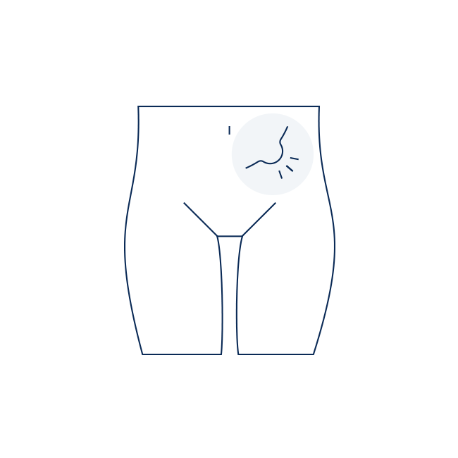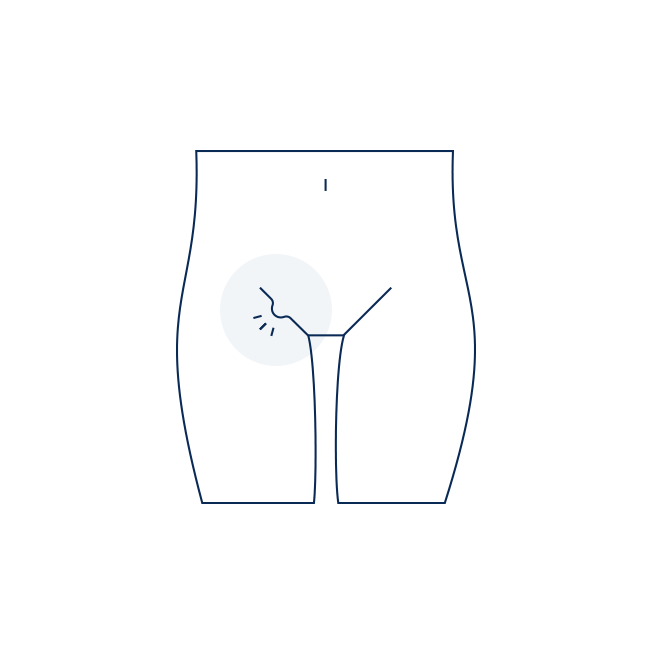 「立ったりお腹に力を入れたりすると足の付け根が膨らむが、横になるともとに戻る」が主な症状です。人によっては違和感・不快感・痛みを感じる事があります。