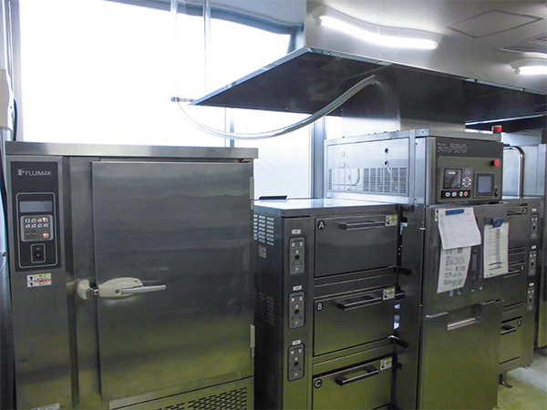 1Fの厨房はオール電化で、外からの光もたっぷり注ぎ、明るい環境で調理を行っています。
