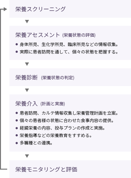 管理栄養士は病棟担当制であり、多職種と連携し専門的な栄養管理をしています。