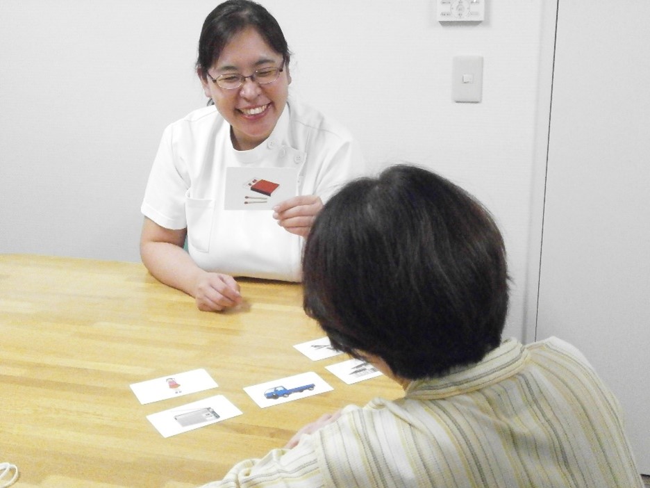 脳血管疾患などによる失語症、構音障害、高次脳機能障害、摂食嚥下障害に対して、早期から介入し、コミュニケーション手段の確保や対応方法、安全な経口摂取環境の設定に努めています。言語・認知機能検査・評価、嚥下機能評価を実施し、訓練・指導・助言・支援を行っています。毎週行われる医師・看護師・ソーシャルワーカー・理学療法士・作業療法士・言語聴覚士による多職種でのカンファレンスの参加し、患者様やご家族様のニーズに合わせたリハビリテーションの提供や退院支援を実施しています。