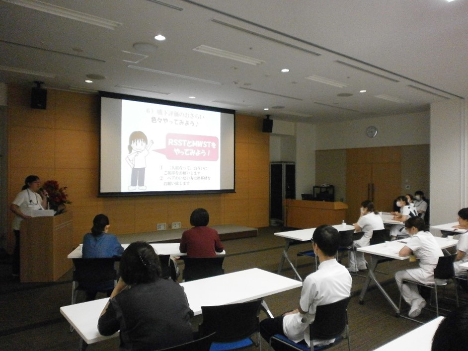 専門職として知識・技術の向上を目的に勉強会の開催や講習会への参加、学会発表などを積極的に行っています。新卒者は当院で作成した新人教育プログラムを通じて、さまざまな疾患の臨床経験を積み、更なる知識・技術の向上を図っています。