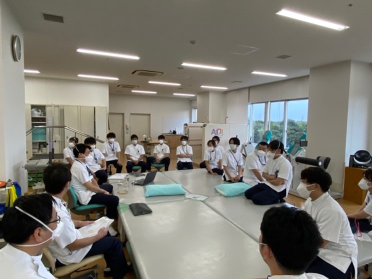 廃用症候群とは、急性疾患や手術等に伴う安静や活動性が低下したことによる身体機能及び日常生活機能低下定義とされています。リハビリテーションでは出来るだけ臥床状態が続かないよう、座位時間を増やす事や四肢の運動を行い廃用症候群からの改善を進めていきます。患者様の状態に合わせて起立訓練や歩行訓練に移行し、入院前の生活に戻れるように介入しています。また、多職種とのカンファレンスや地域の関連職種との連携を行い、退院後の生活をより安心して送れるよう支援しています。