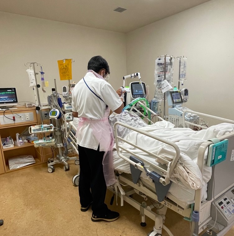 当院ICUでは、心臓血管外科術後患者が多く手術の翌日から医師と相談して歩行訓練を積極的に行っています。また、脳血管疾患や重症疾患患者様に対して人工呼吸器管理中でも早期から端坐位や車椅子乗車なども行っています.CCUでは、冠動脈疾患や重症心不全患者様に対してリハビリテーションを提供し、一般病棟へ繋げ生活へ戻れるよう早期より支援しています。集中治療後症候群(PICS)の予防として、多職種間で連携をとり患者様とそのご家族様に寄り添った介入を提供しています。