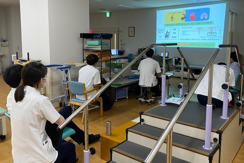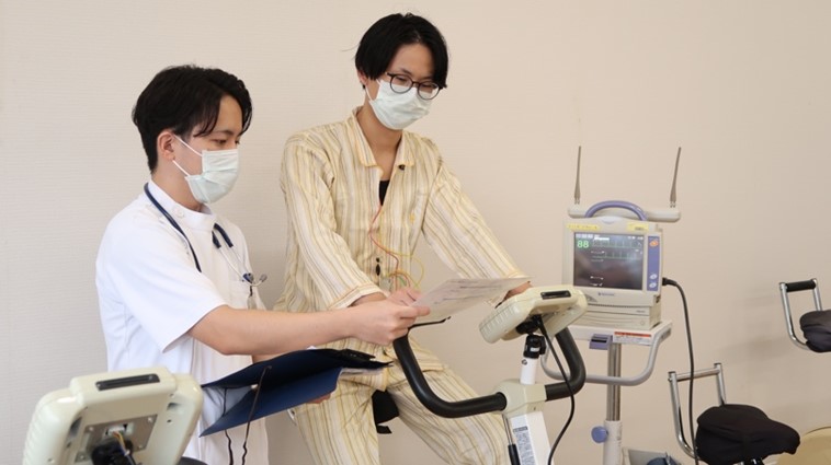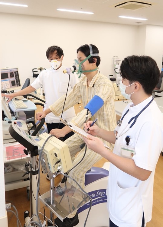 また、入院中に心肺運動負荷試験(CPX)を行い、結果を基に運動の頻度・強度・時間・種類・量を設定し、入院中から退院後も含め、患者様個々に合わせた運動方法をご提案させて頂きます。退院後、主治医やリハビリテーション医師と相談の上、新東京クリニックでの外来心臓リハビリテーションへ移行し、継続した運動療法や生活管理の是正に向けた支援をしていきます。