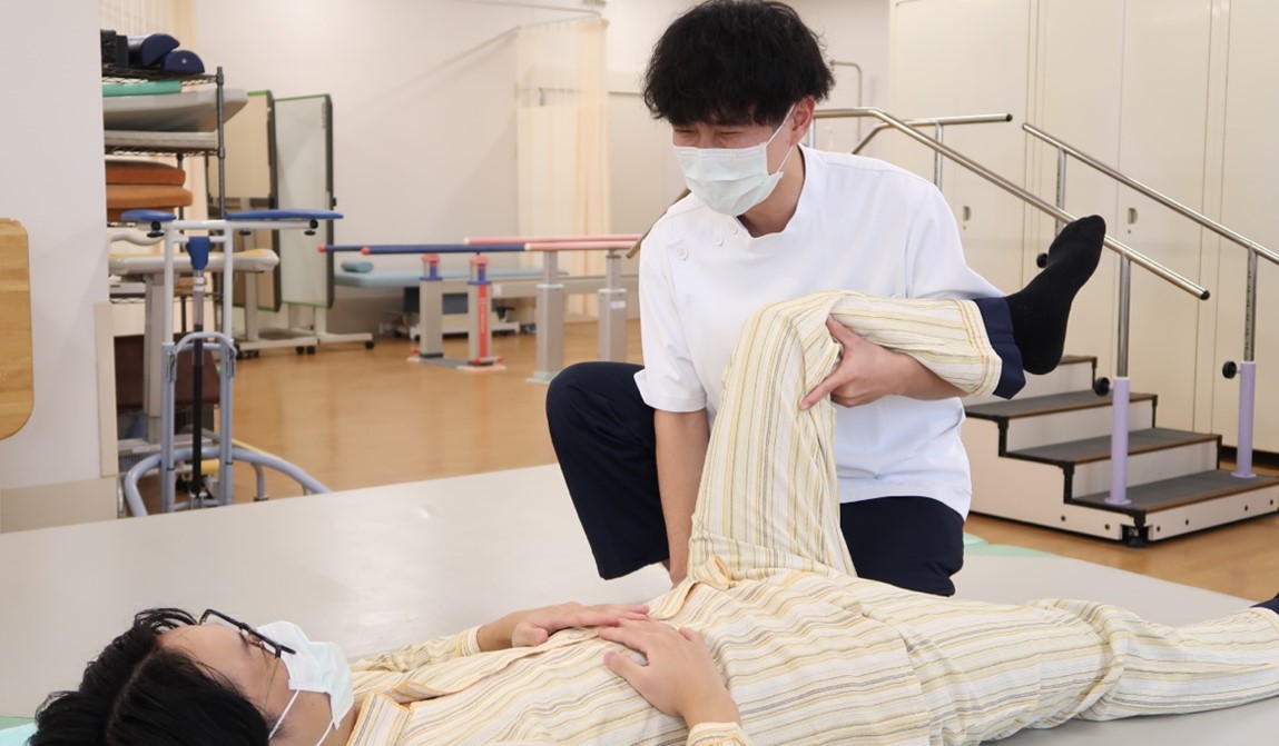 骨、筋肉、神経などの怪我、変形性関節症や腰部脊柱管狭窄症などの症状、人工関節などの手術後の状態に対してリハビリテーションを行っています。「腕が上がらなくなった」、「痛くて歩けない」といった様々な症状の緩和に向けて、理学療法士が手足の機能の改善や動き方の改善を行います。治療に必要な場合、サポーターやコルセット、靴の中に入れる足底板(インソール)などの装具の提供も行っています。