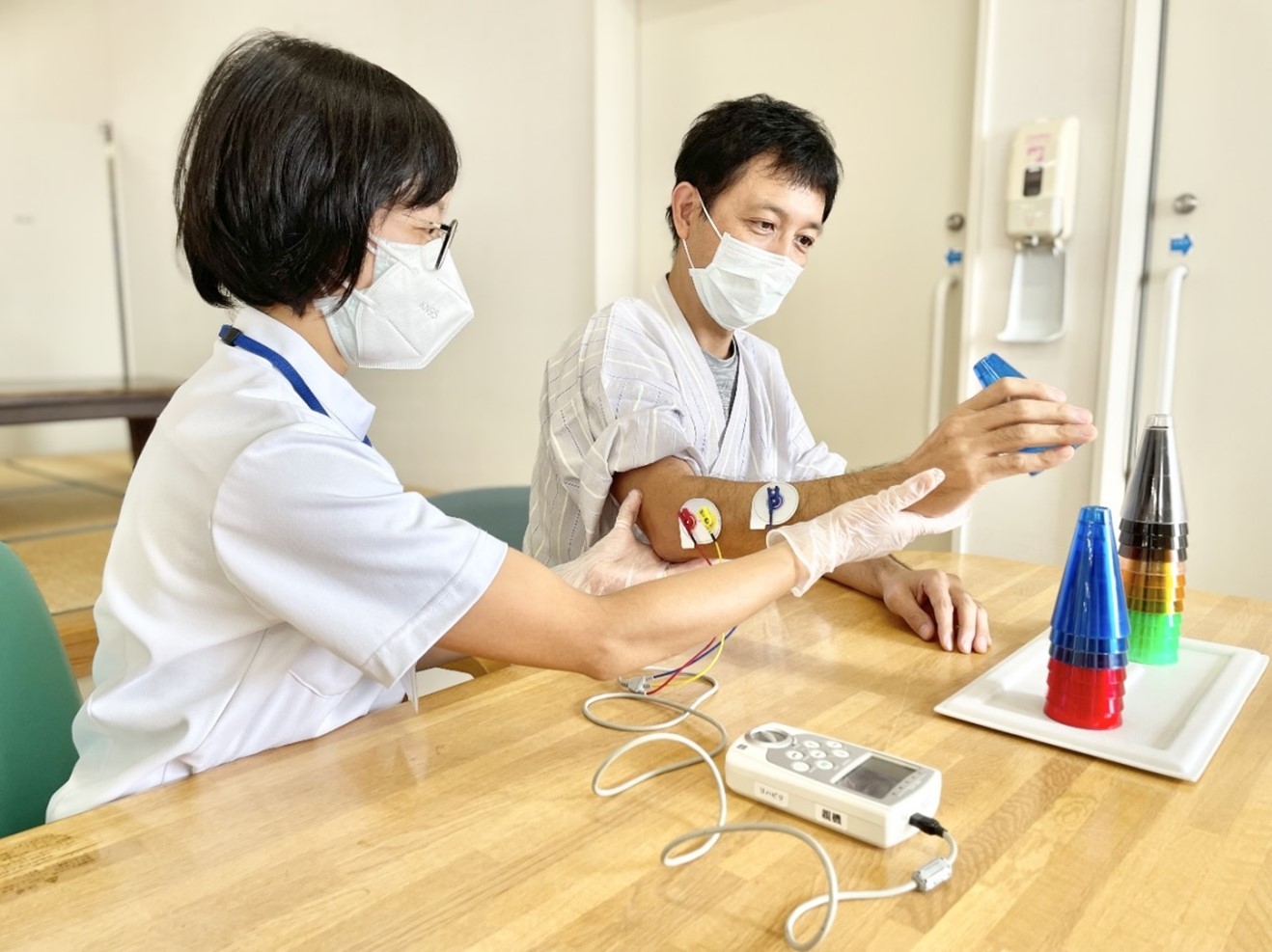 作業療法は、人々の健康と幸福を促進するために、医療、保健、福祉、教育、職業などの領域で行われる、作業に焦点を当てた治療、指導、援助であると定義されています。作業とは、対象となる人々にとって目的や価値を持つ生活行為を指します。当院では脳神経外科、脳神経内科、形成外科、整形外科、心臓血管外科、心臓内科、外科、消化器内科等の多岐にわたる診療科から依頼を受け、身体・認知機能の向上や在宅復帰を目標に作業療法を提供しております。集中治療域といった超急性期から患者様に関わり、日々の患者様の状態に合わせて作業療法を提供しております。部門内のみに関わらず、多職種と密に連携を図り、患者様にとってより良い生活が送れるように、作業療法士一同尽力してまいります。